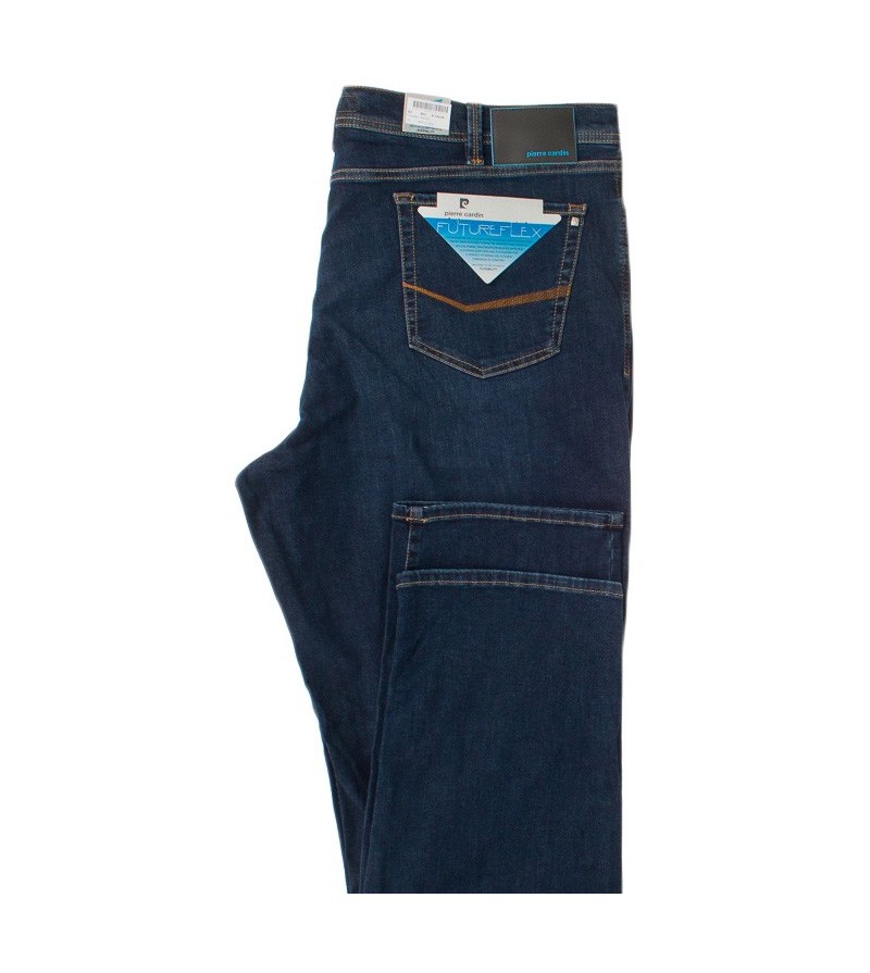 Futureflex - Tussenbeenlengte 34 lage taille futureflex 5 pocket donkere kleur netjes lusjes voor riem comfortabel 73%katoen, 18%poleyster 8%viscose 30°was 100% kleurvast kleur: navy washed denim