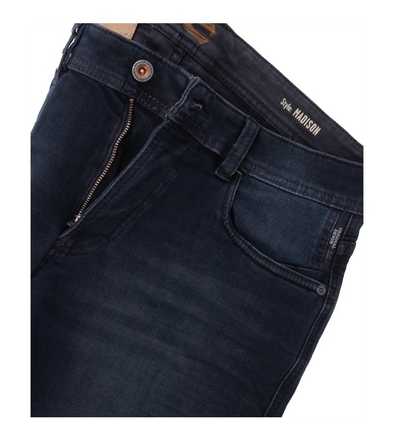 Madison - Tussenbeenlengte 38 488515 9544 83 model madison slim fit behoud de kleur lage taille rechte pijp 38 inche 5-pockets 99% katoen 1% elasthan kleur: dark denim