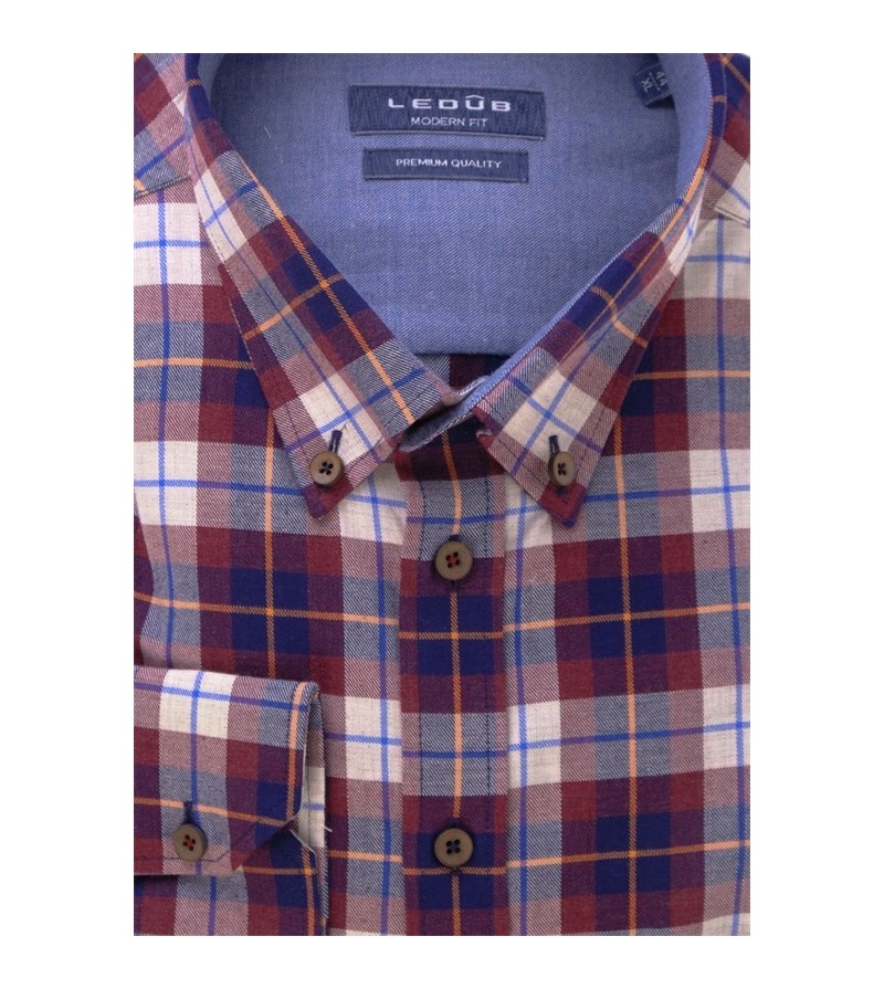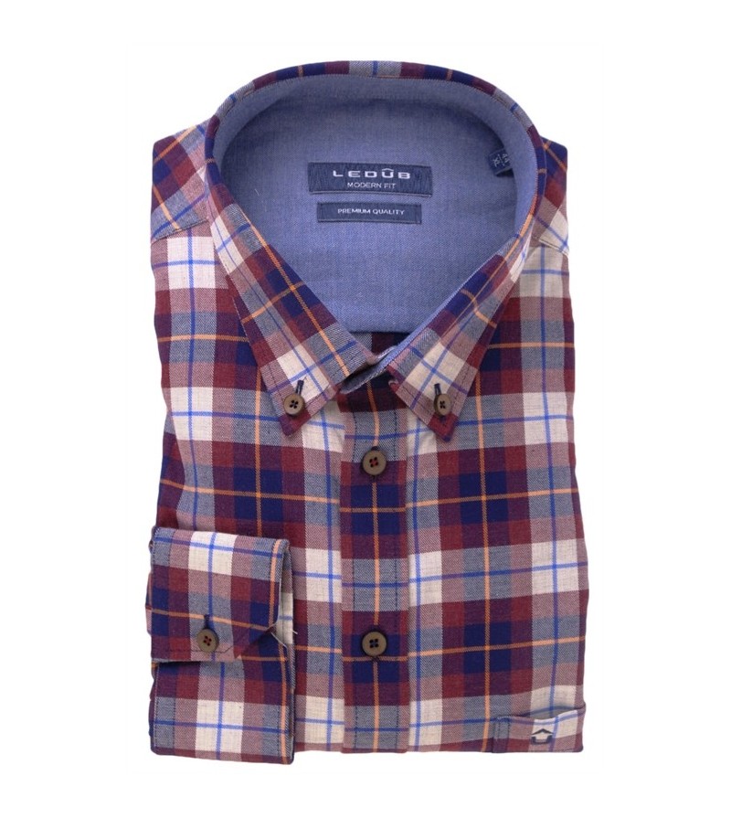 Tall Man Hemd lange mouwen modern fit button down kraag borstzakje ruitjesmotief sportieve look comfortabel goede pasvorm voelt zacht 100%katoen 40°was kleur : bruin