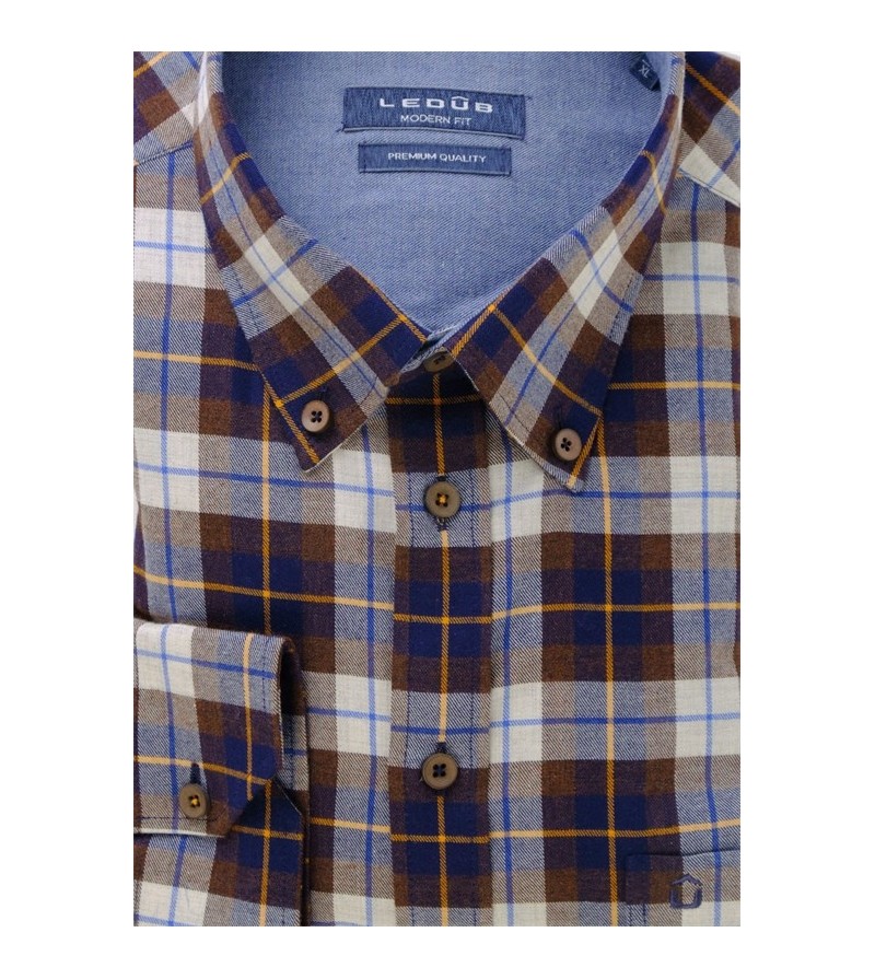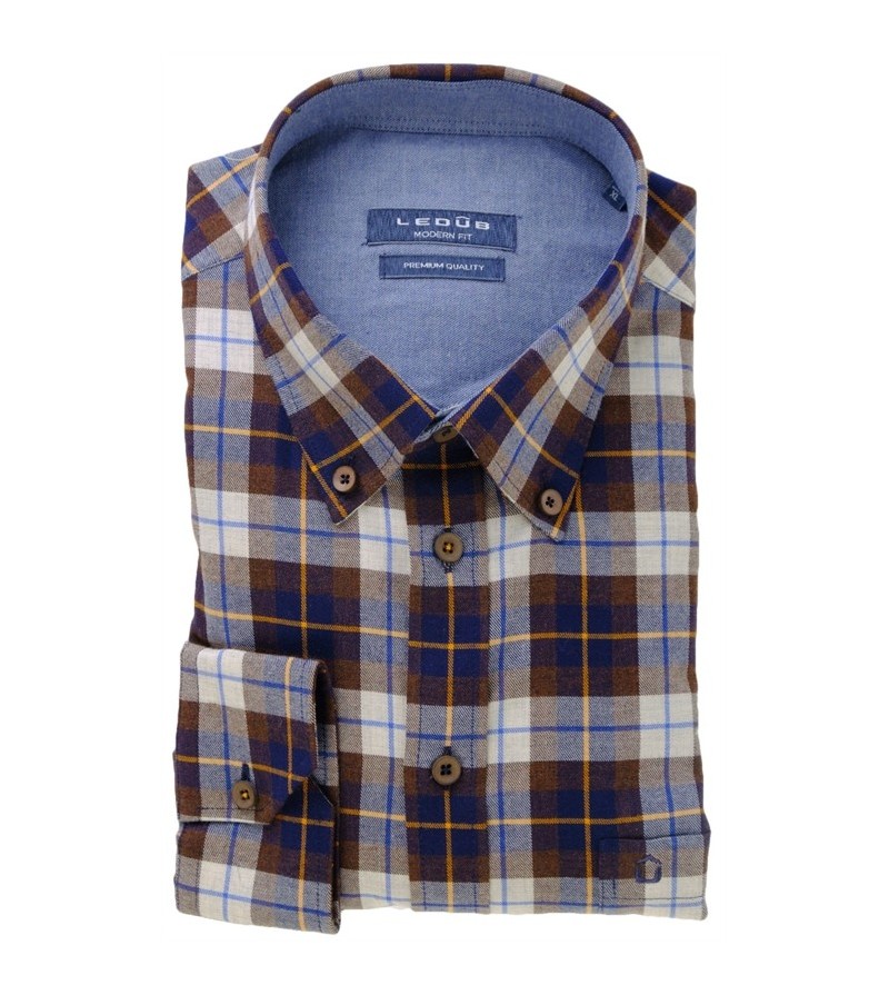 Tall Man Hemd lange mouw modern fit borstzakje button down kraag easy iron netjes goede lengte voelt zacht comfortabel kwaliteit 100%katoen 40°was kleur : bruin