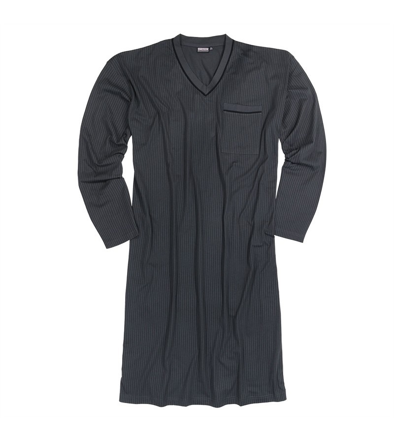 pyjamakleed lekker lang met lange mouw 100% katoen v-hals jersey stof met zwarte streepjes kleur: zwart