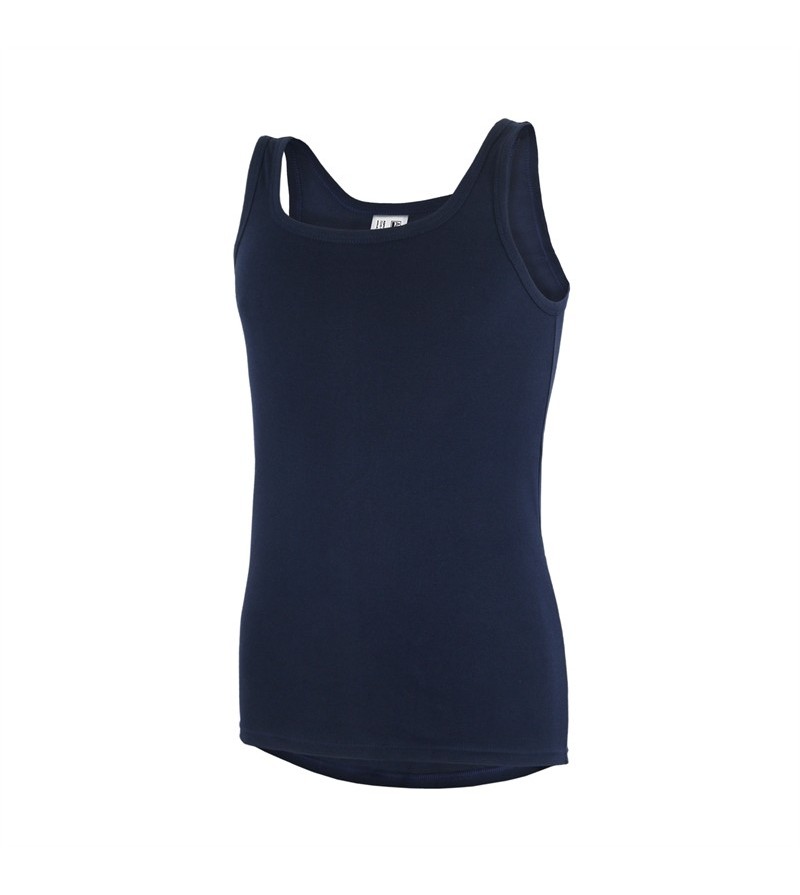 Onderhemd zonder mouwen fijne rip katoen 100%katoen lekker lang machine was 40° mooie halsuitsnijding kleur: marine