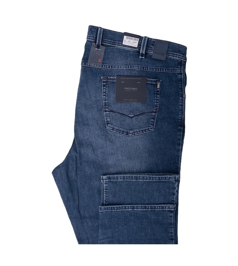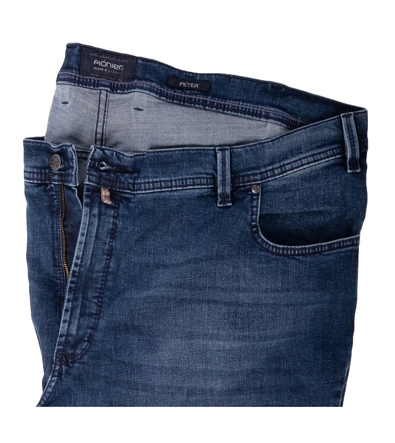 Pioneer comfort flexx zeer fijne stretchstof 2562 6125 665 lage taille mooie kleurschakering met grijs stiksel stoere canvas stof model: Peter 98%katoen 2%elasthan losser op de bovenbenen regular fitting cleane wassing kleur: dark stone washed