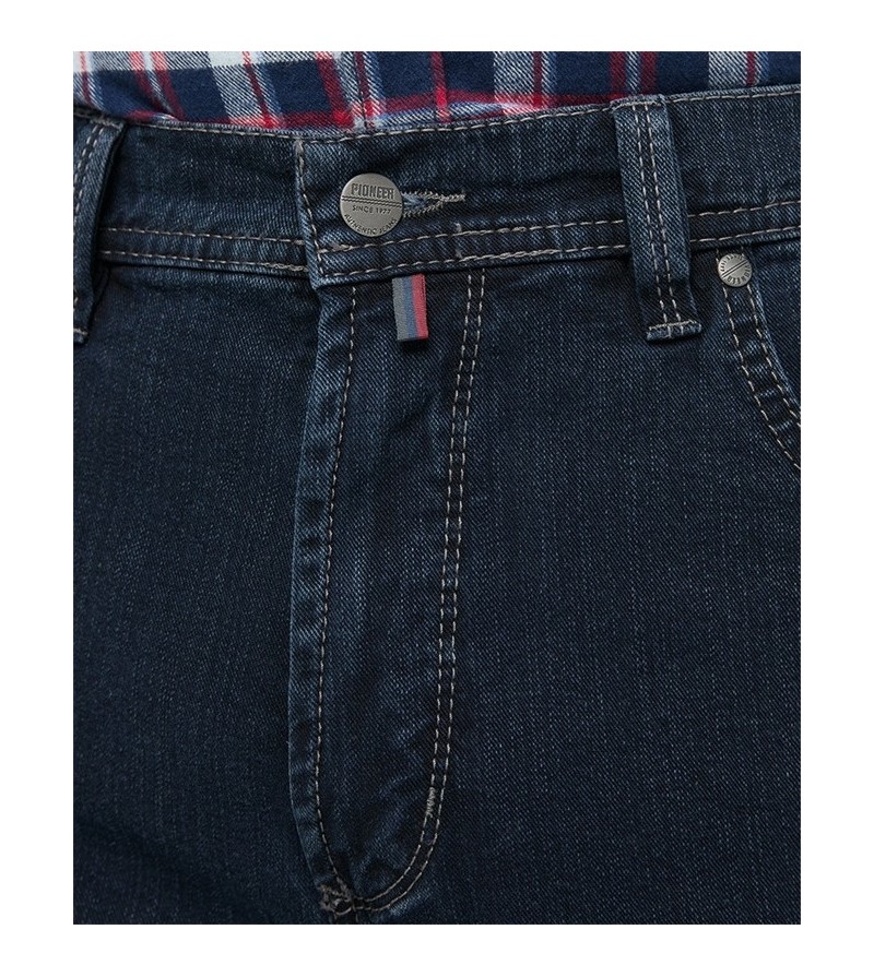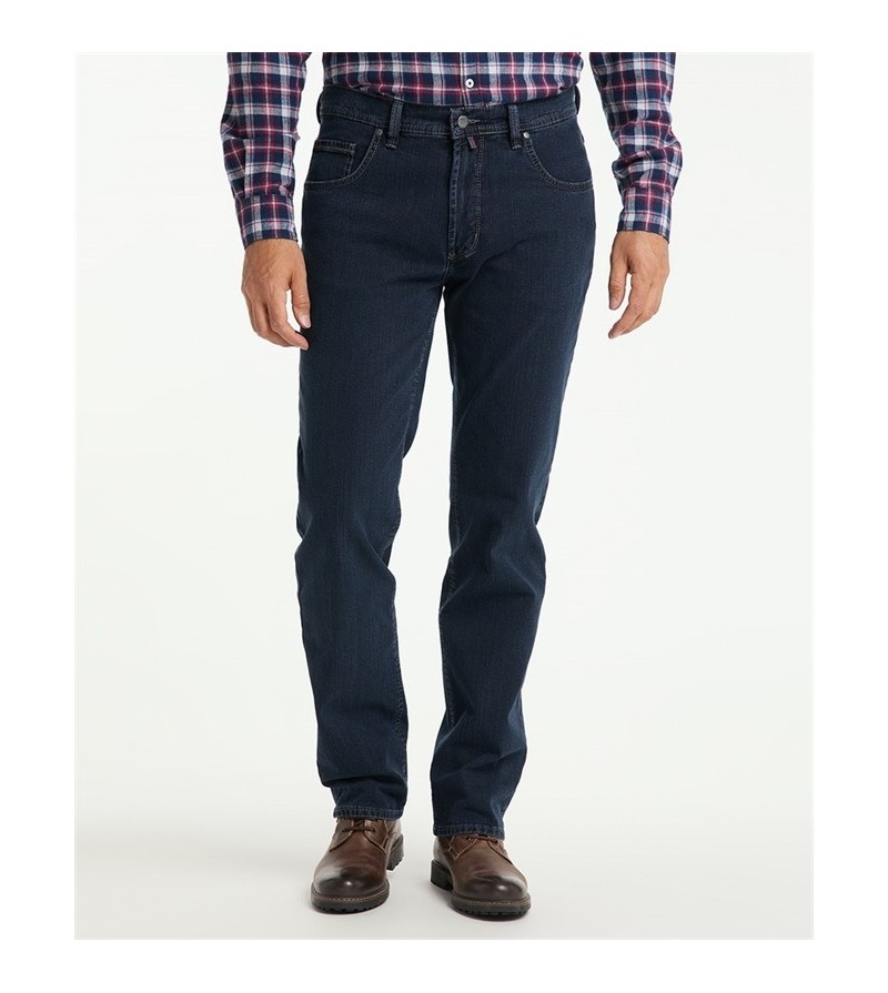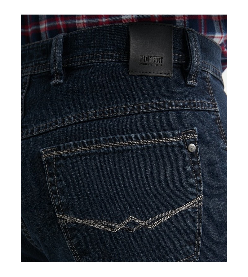 Pioneer comfort flexx zeer fijne stretchstof 2562 6125 665 lage taille mooie kleurschakering met grijs stiksel stoere canvas stof model: Peter 98%katoen 2%elasthan losser op de bovenbenen regular fitting cleane wassing kleur: dark stone washed