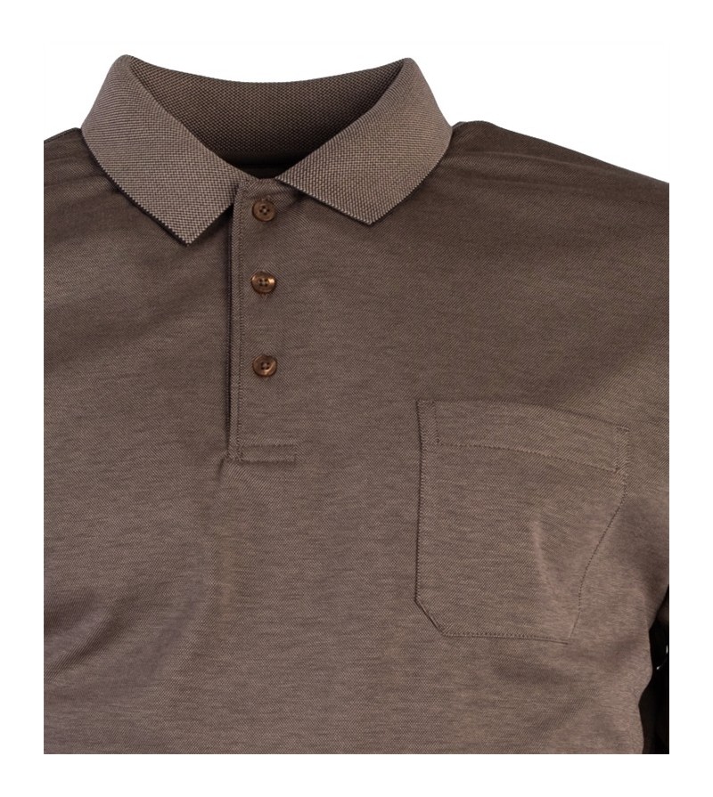 EASY CARE POLO korte mouw 3 knopen easy care borstzakje comfortabel zacht soft knit niet strijken 2 zijsplitjes 70% katoen, 30% polyester 30° was kleur: bruin