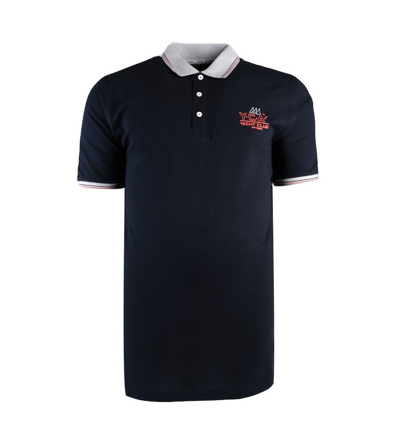 Tall Man Polo korte mouwen 3 knopen kleine tekening op borst kwaliteit comfortabel netjes afgewerkt kraag afgewerkt met donker blauw 100%katoen 30°was kleur : blauw