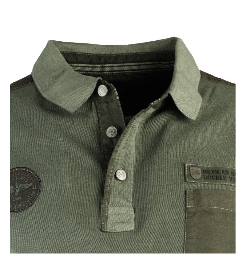 Big Man Polo korte mouwen 3 knopen dikkere stof sportieve look borstzakje stretch comfortabel tekening op borst 100%katoen 30°was kleur : kaki