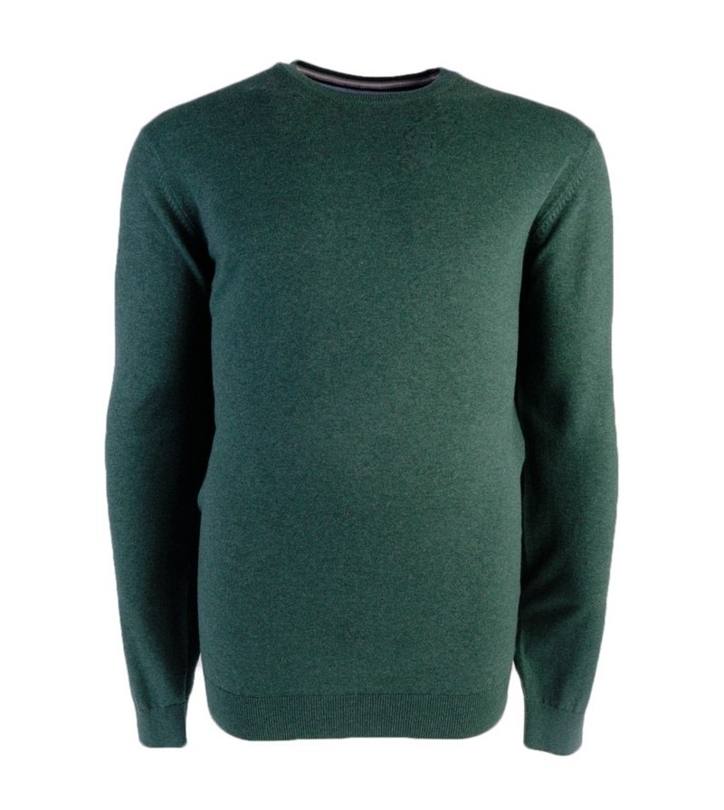 Tall Man Pull met ronde hals boord onderaan voelt zacht goede pasvorm kwaliteit comfortabel klein logo op mouw 51% wol, 49% polyester 30°was kleur: groen