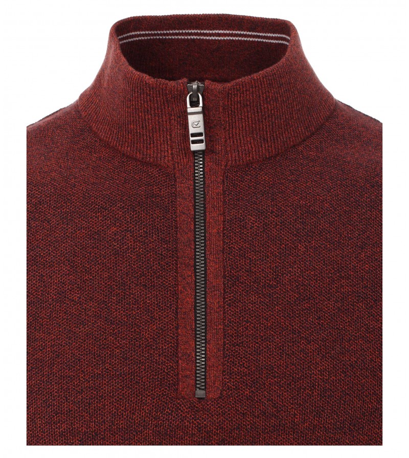 Big Man Sweater met kort ritsje boord onderaan comfortabel kwaliteit dunne stof 51% wol, 49% acryl 30°was kleur : antraciet met rood