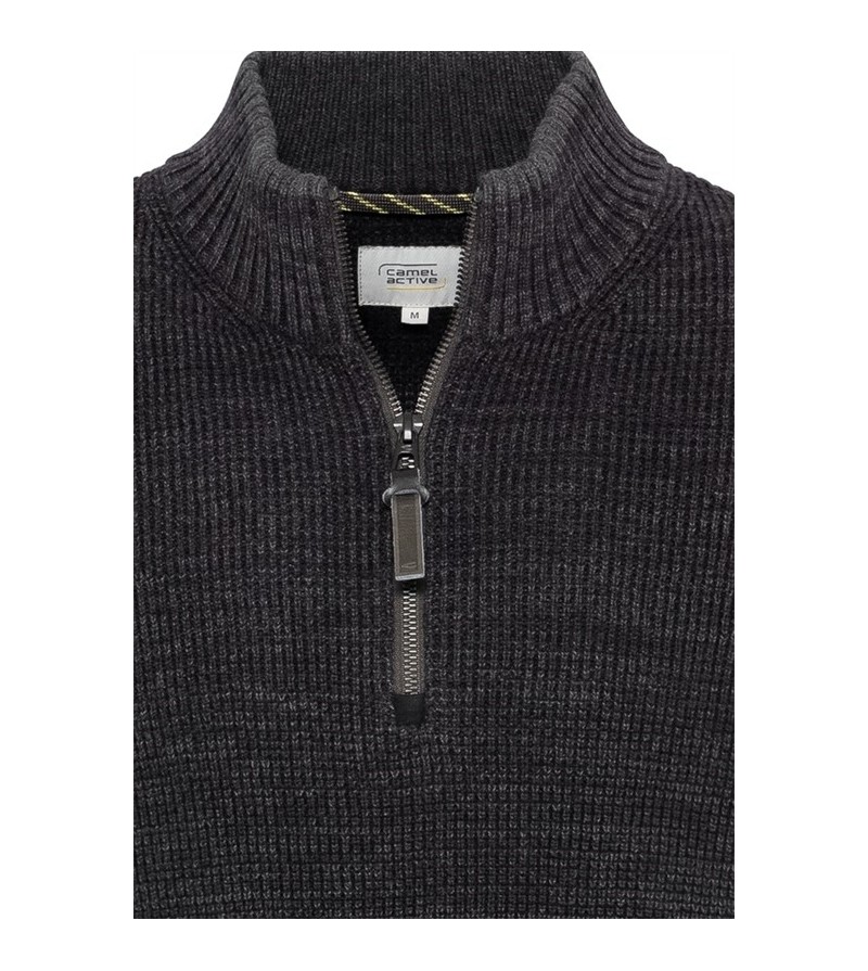 Big Man Sweater met kort ritsje boord onderaan comfortabel kwaliteit dunne stof 51% wol, 49% acryl 30°was kleur : antraciet met rood