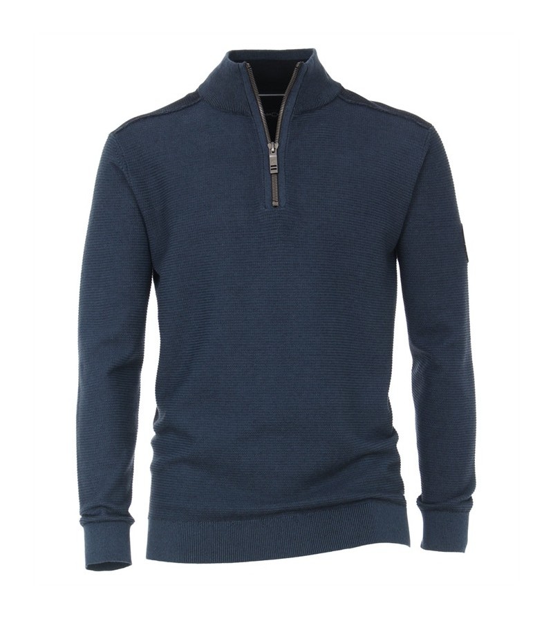 Big Man Sweater met kort ritsje boord onderaan comfortabel kwaliteit dunne stof 51% wol, 49% acryl 30°was kleur : navy