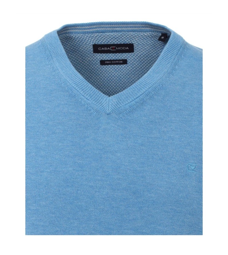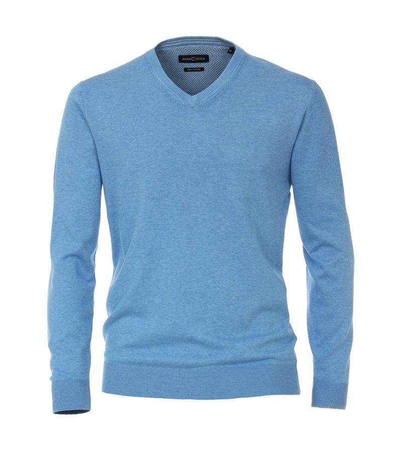 Big Man Pull V hals lange mouwen boord onderaan kwaliteit comfortabel klein logo geborduurd 100%katoen 40°was kleur: ocean blue