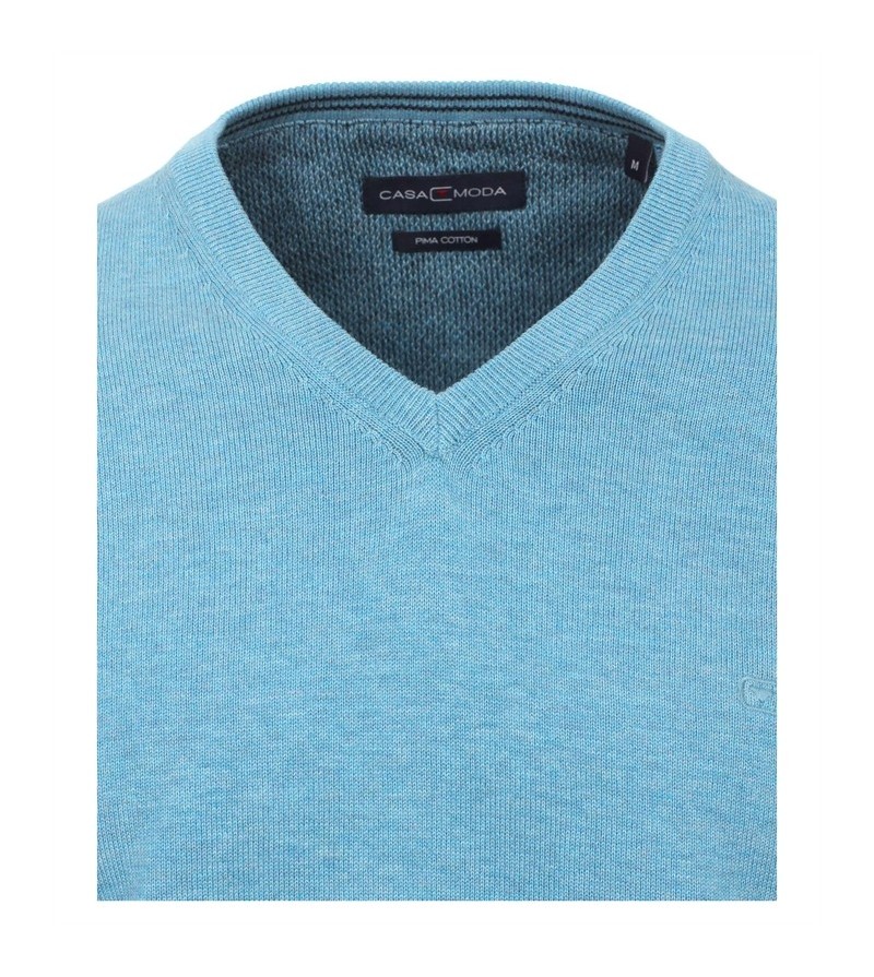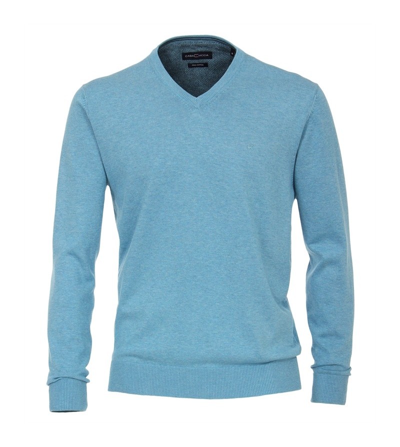 Big Man Pull V hals lange mouwen boord onderaan kwaliteit comfortabel klein logo geborduurd 100%katoen 40°was kleur: ocean blue