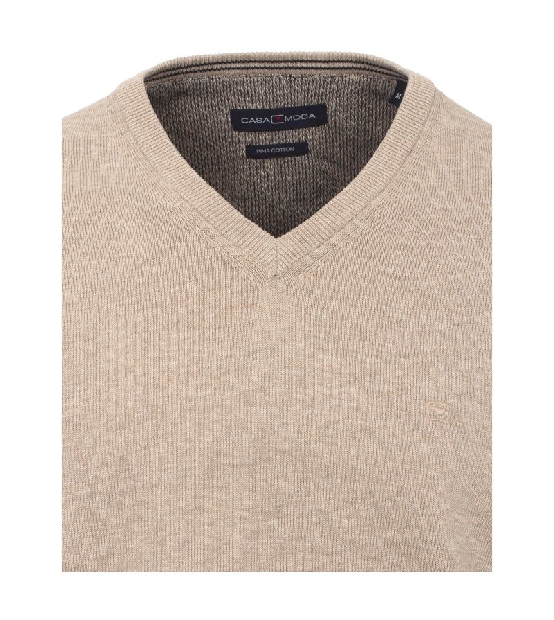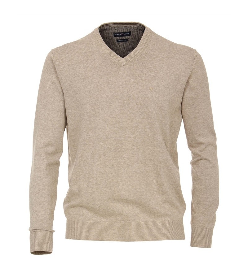 Big Man Pull V hals lange mouwen boord onderaan kwaliteit comfortabel klein logo geborduurd 100%katoen 40°was kleur: beige