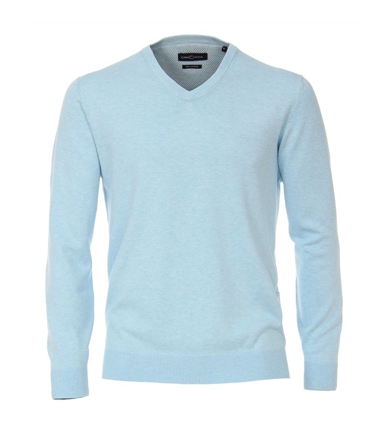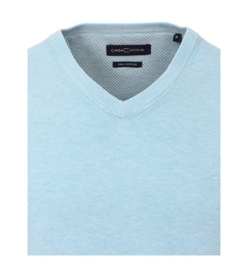 Big Man Pull V hals lange mouwen boord onderaan kwaliteit comfortabel klein logo geborduurd 100%katoen 40°was kleur: ocean blue