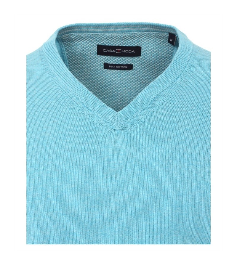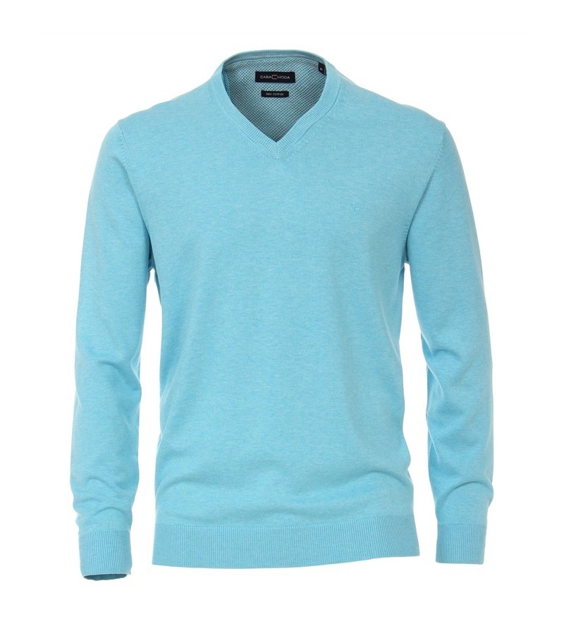 Big Man Pull V hals lange mouwen boord onderaan kwaliteit comfortabel klein logo geborduurd 100%katoen 40°was kleur: ocean blue