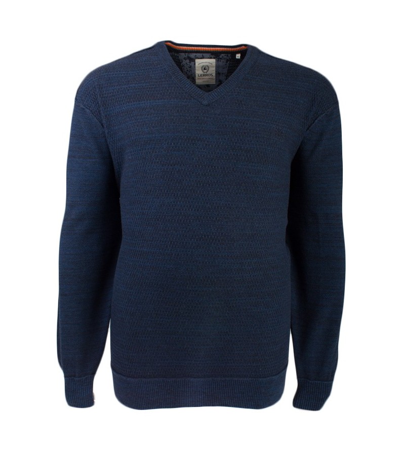 Big Man Pull V hals lange mouwen boord onderaan kwaliteit comfortabel klein logo geborduurd 100%katoen 30°was kleur: blauw