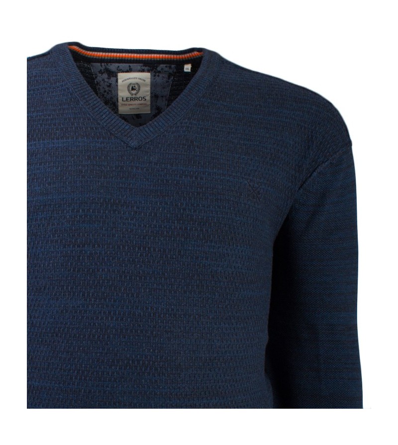 Big Man Pull V hals lange mouwen boord onderaan kwaliteit comfortabel klein logo geborduurd 100%katoen 40°was kleur: ocean blue
