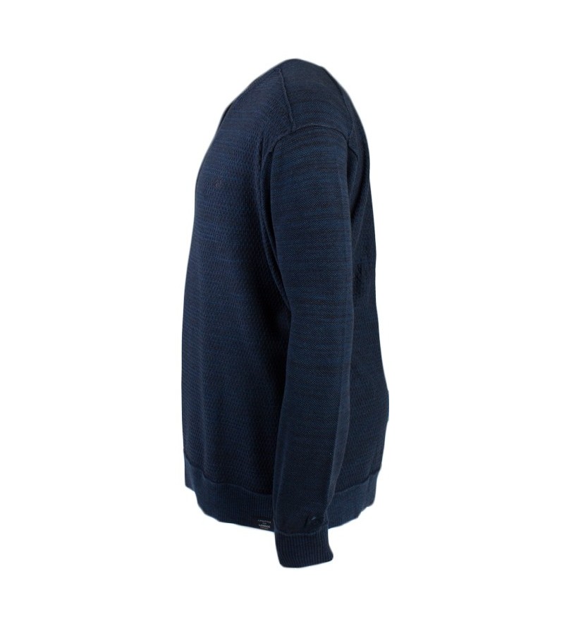 Big Man Pull V hals lange mouwen boord onderaan kwaliteit comfortabel klein logo geborduurd 100%katoen 40°was kleur: blauw