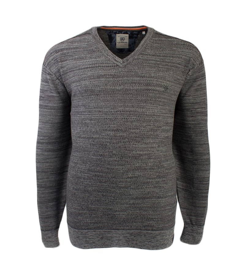 Big Man Pull V hals lange mouwen boord onderaan kwaliteit comfortabel klein logo geborduurd 100%katoen 30°was kleur: grijs