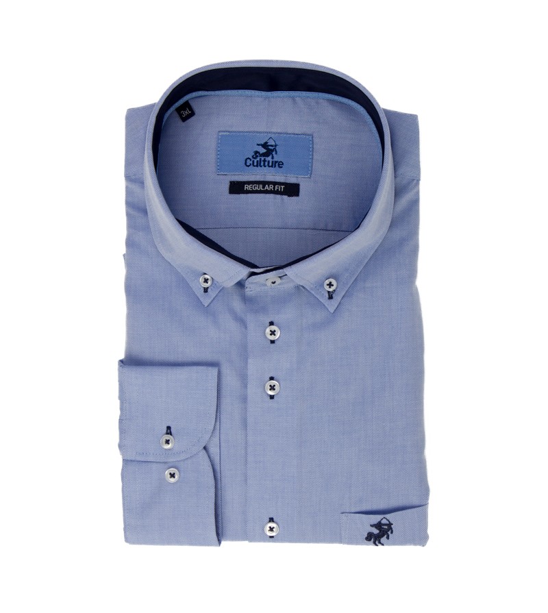 Extra Lang Overhemd regular fit zeer lang!!! goede pasvorm strijkvrij button down kraag mooie geweven structuur 100%katoen kleur: blauw