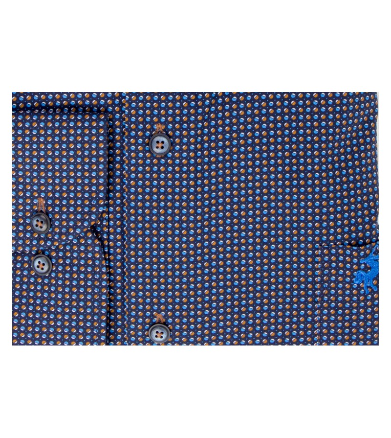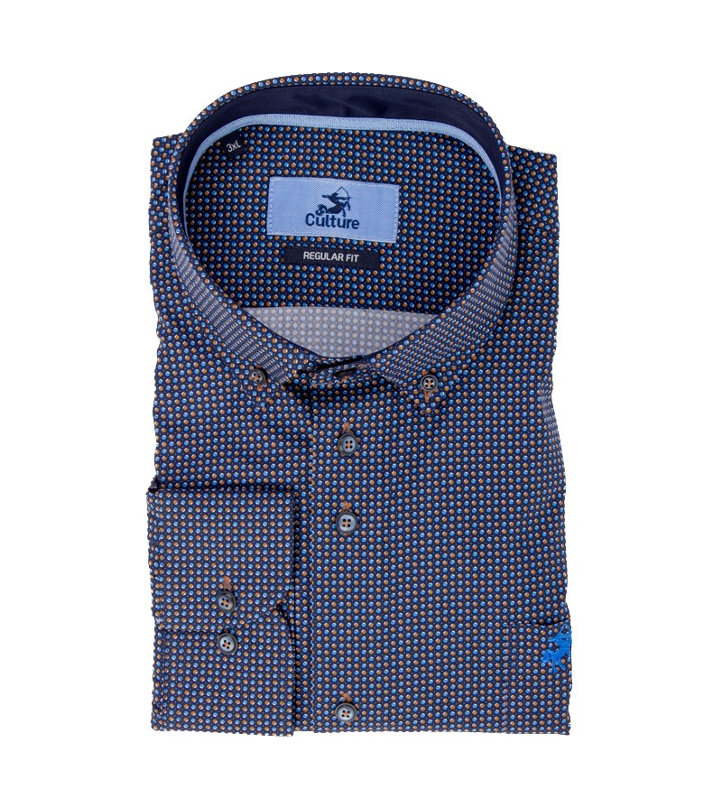 Extra Lang Overhemd regular fit zeer lang!!! goede pasvorm strijkvrij button down kraag prachtige print diafragma print 100%katoen kleur: navy