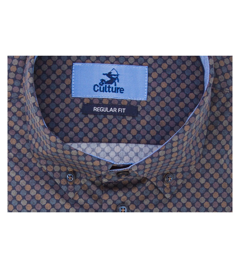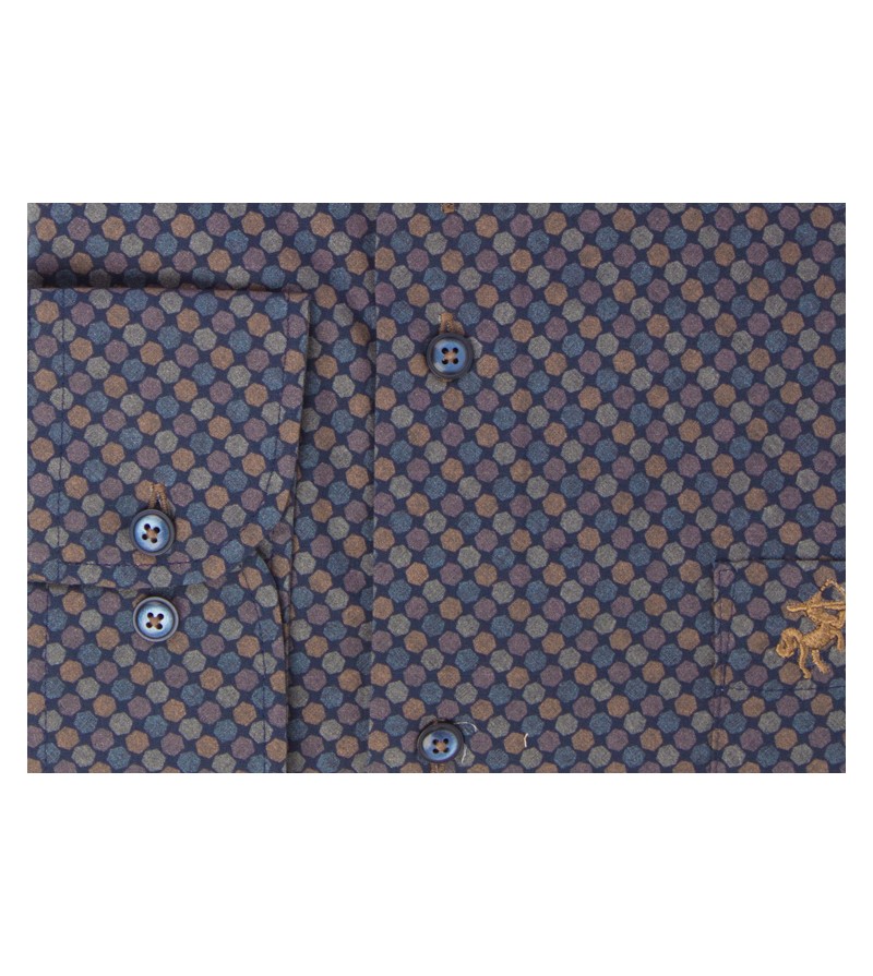 Big Man Hemd lange mouw regular fit button down kraag borstzakje bloemetjesmotief comfortabel kwaliteit 100%katoen 30°was kleur : blauw