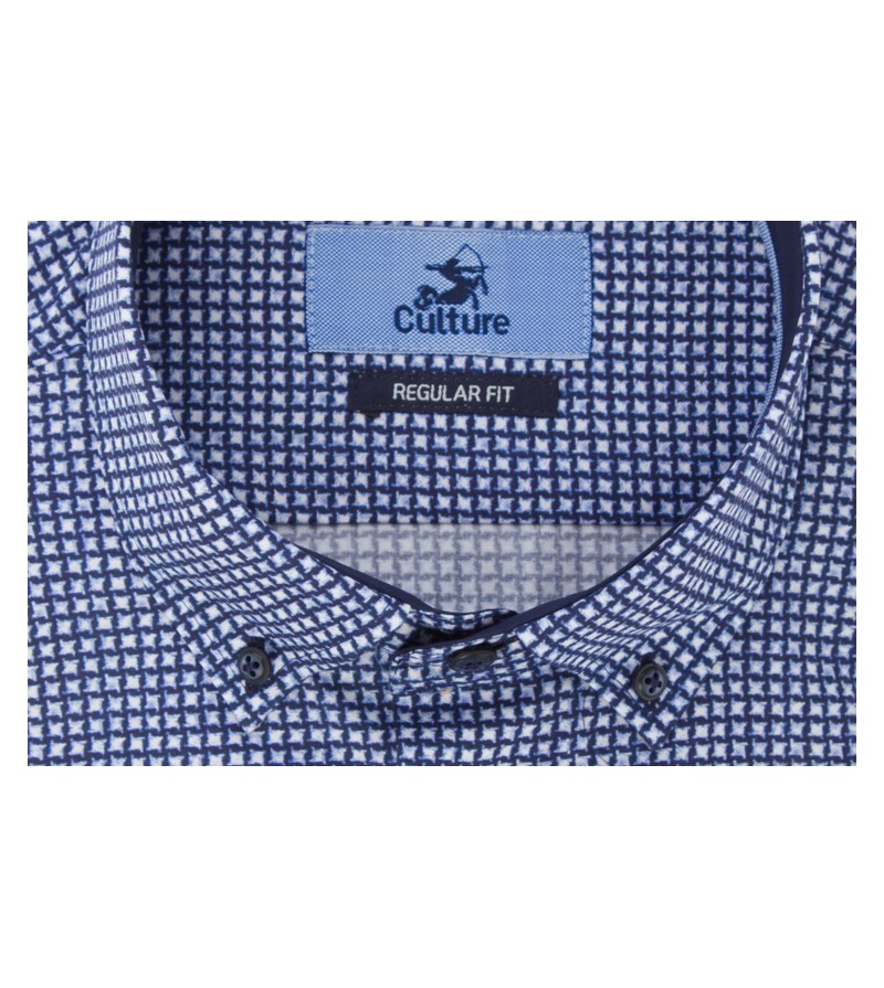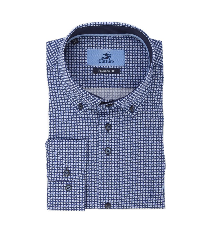 Big Man Hemd lange mouw regular fit button down kraag borstzakje bloemetjesmotief comfortabel kwaliteit 100%katoen 30°was kleur : blauw