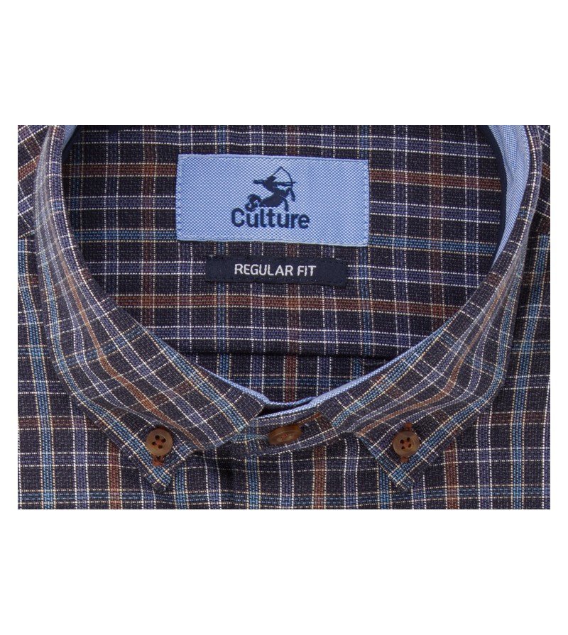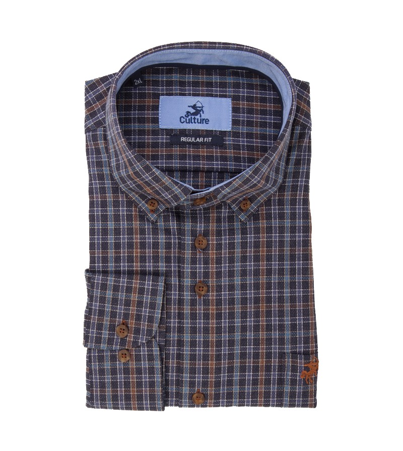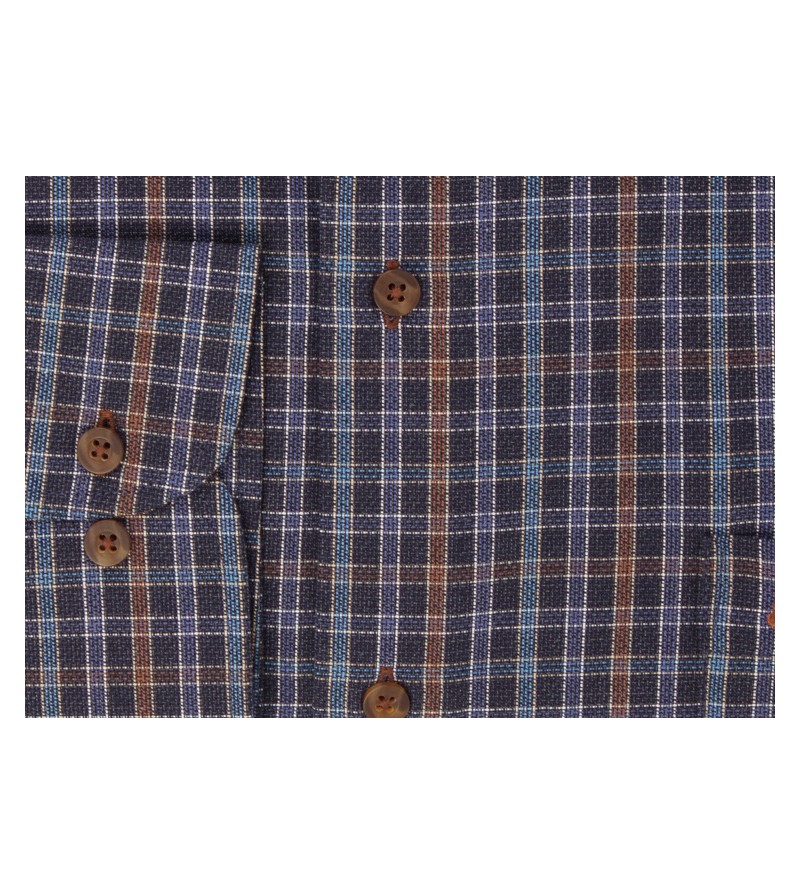Extra Lang Overhemd regular fit extra lange romplengte, speciaal voor de buik goede pasvorm strijkvrij button down kraag fijn geweven 100%katoen kleur: blauw / bruin