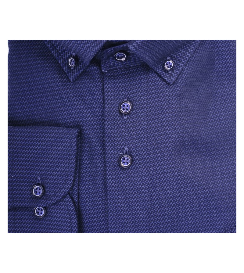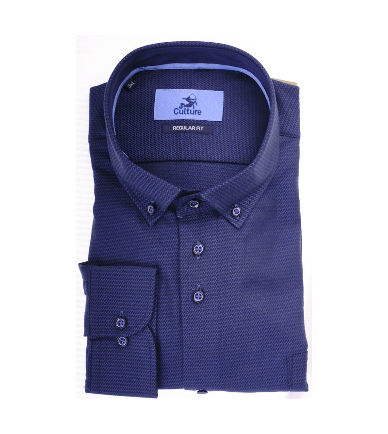 Big Man Hemd lange mouw regular fit button down kraag borstzakje bloemetjesmotief comfortabel kwaliteit 100%katoen 30°was kleur : blauw