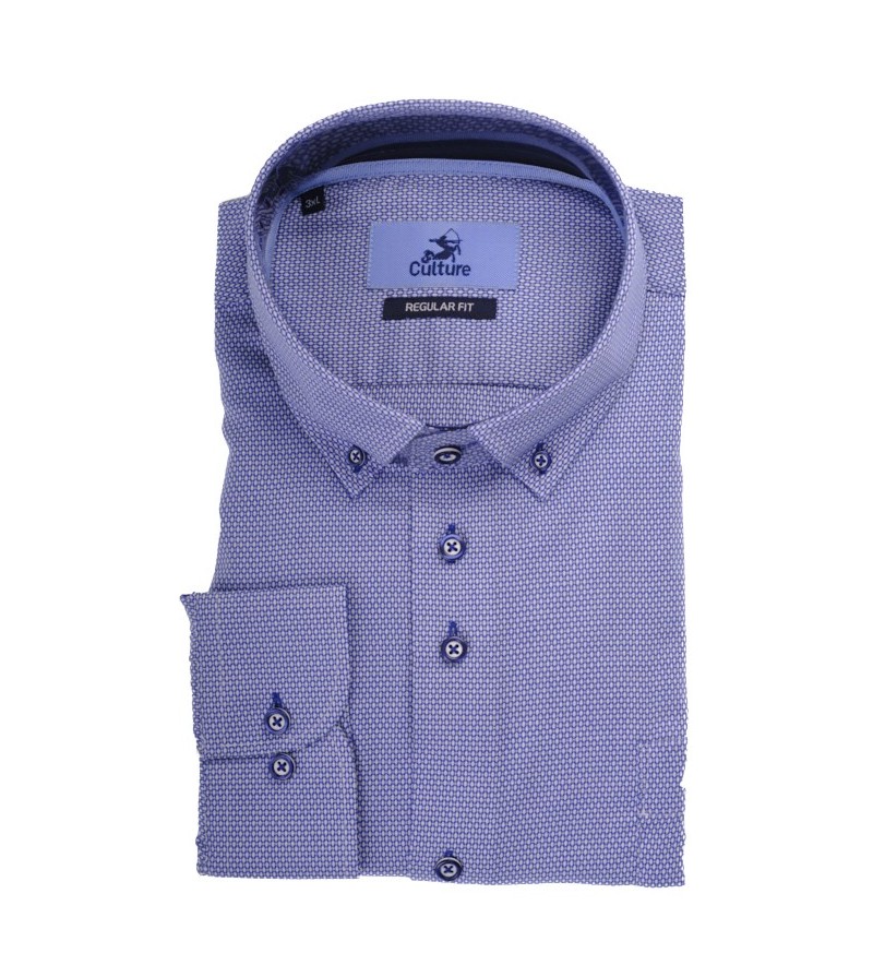 Big Man Hemd lange mouw regular fit button down kraag borstzakje bloemetjesmotief comfortabel kwaliteit 100%katoen 30°was kleur : blauw