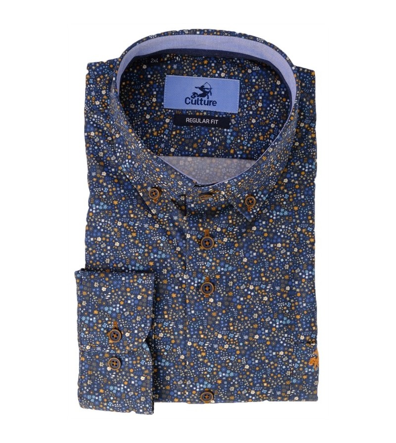 Big Man Hemd lange mouwen extra lengte regular fit button down kraag borstzakje comfortabel sportieve look 100%katoen 30°was kleur : blauw