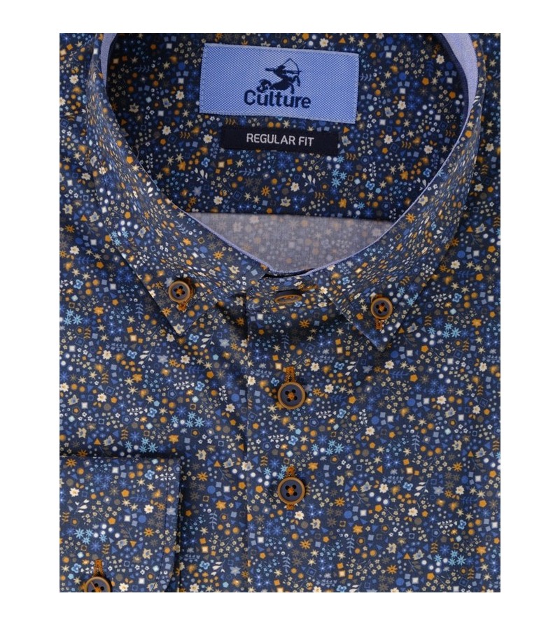 Extra Lang Overhemd regular fit extra lange romplengte, speciaal voor de buik goede pasvorm strijkvrij button down kraag fijn geweven 100%katoen kleur: blauw / bruin