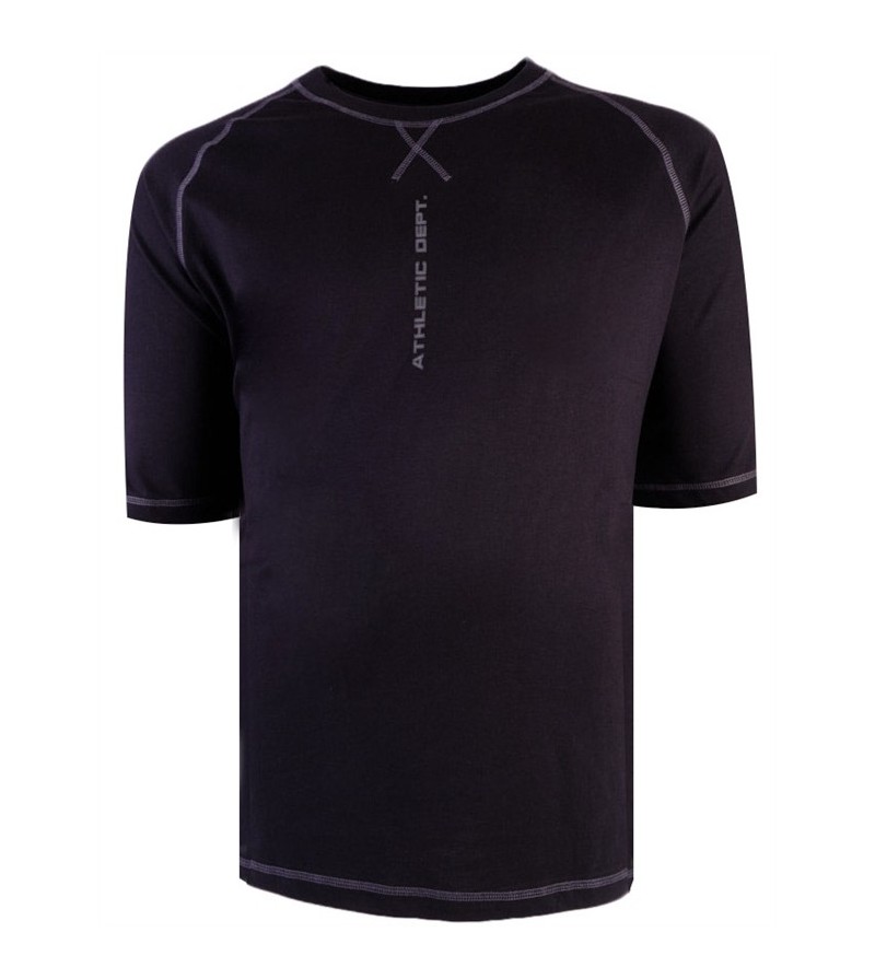 Big Man Tshirt korte mouw klein logo met witte schouderstreep voelt zacht aan soepele stof behoud de vorm super licht geurloos ademend kwaliteit soft knit easy care strijkvrij 100%polyester kleur: zwart