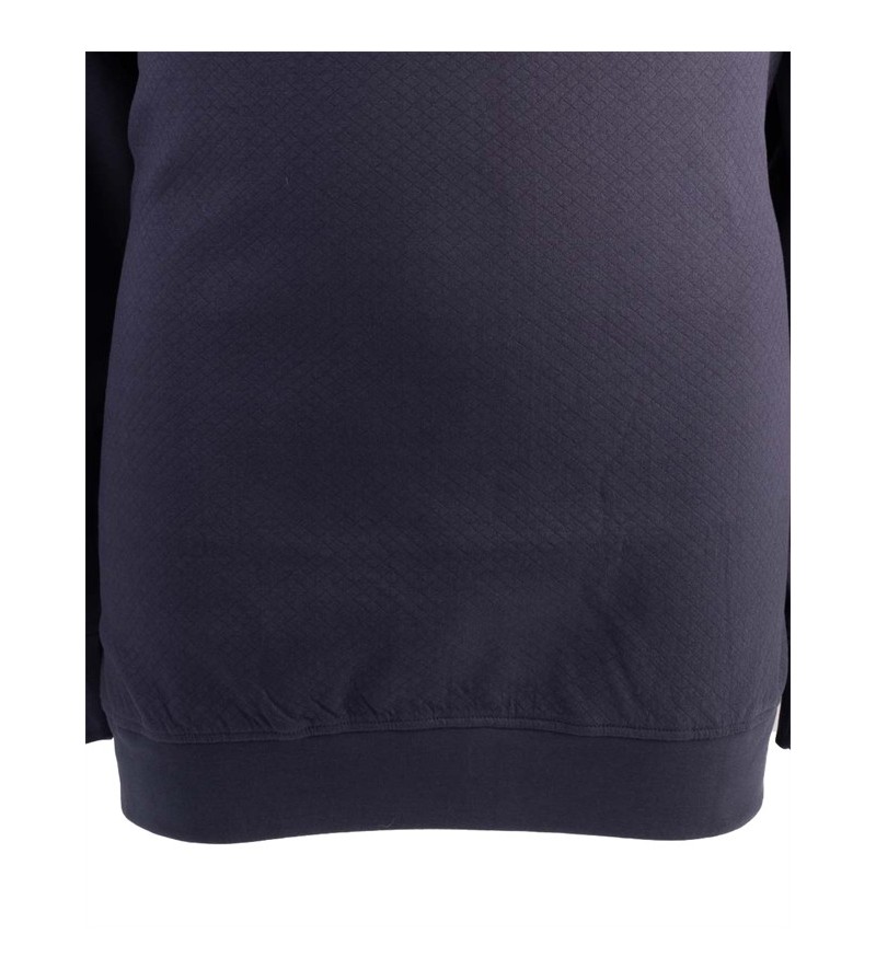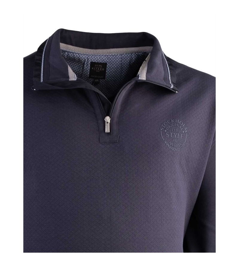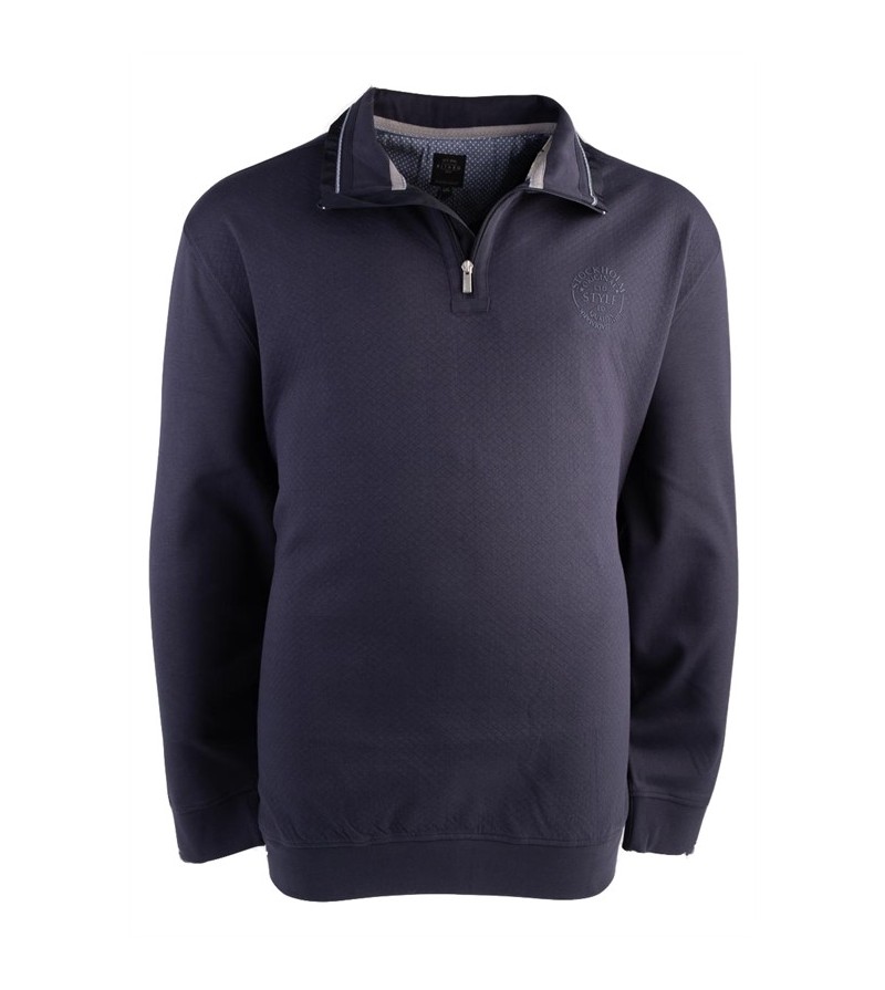 Big man sweater met zipper met platte kraag met 2 zakken sportief onder bodywarmer lekker zacht comfortabel met opdruk 70% katoen 30%poleyster 30°was kleur: navy