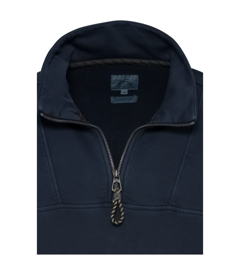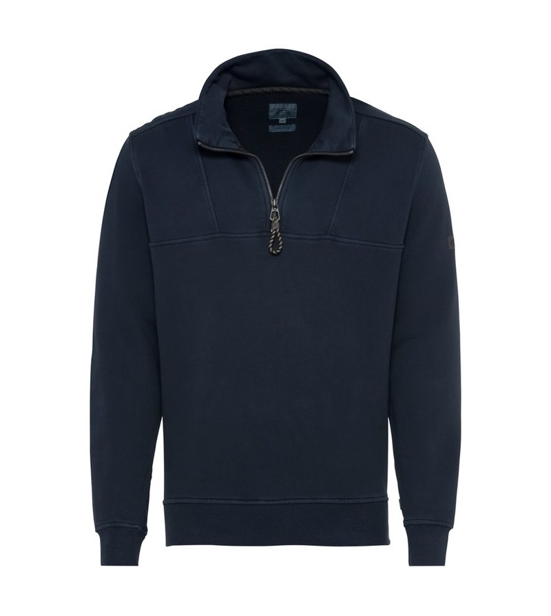 Sweater met ritsje platte kraag dunne stof met boord met borstzakje mooie afwerking allround sweater 100%katoen kleur: blauw