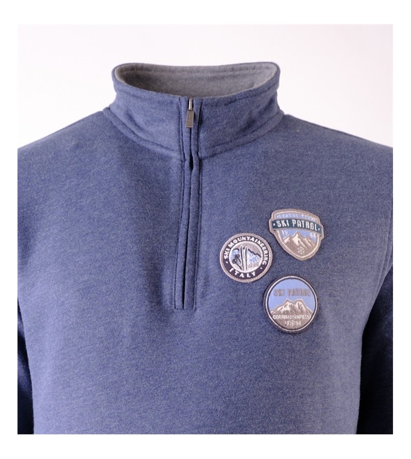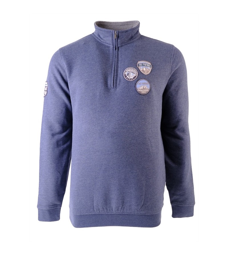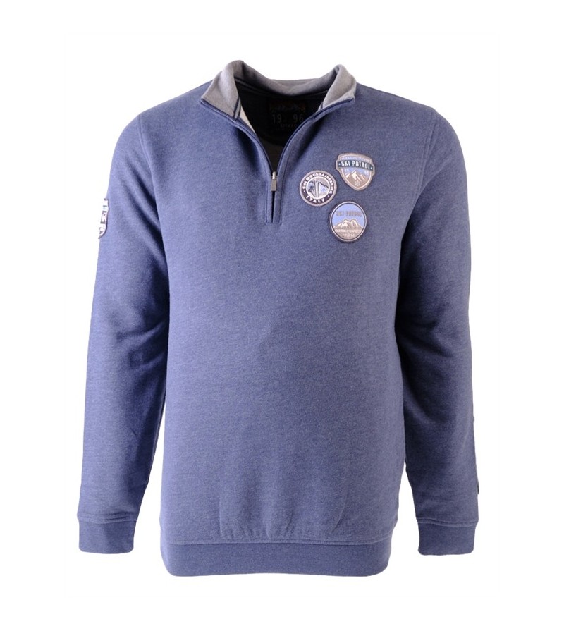 Tall Man Sweatervest ritssluiting boord onderaan kleine tekening geborduurd voelt zacht fleece vanbinnen comfortabel goede pasvorm kwaliteit 70%katoen, 30%polyester 30°was kleur : grijs / navy