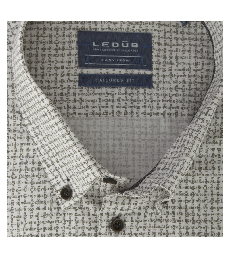 Tall Man Hemd tailored fit lange mouw 76 cm bruine knopen blauwe details stretch kent kraag easy iron netjes afgewerkt comfortabel leuk motief 97%katoen, 3%elasthaan 40°was kleur: wit