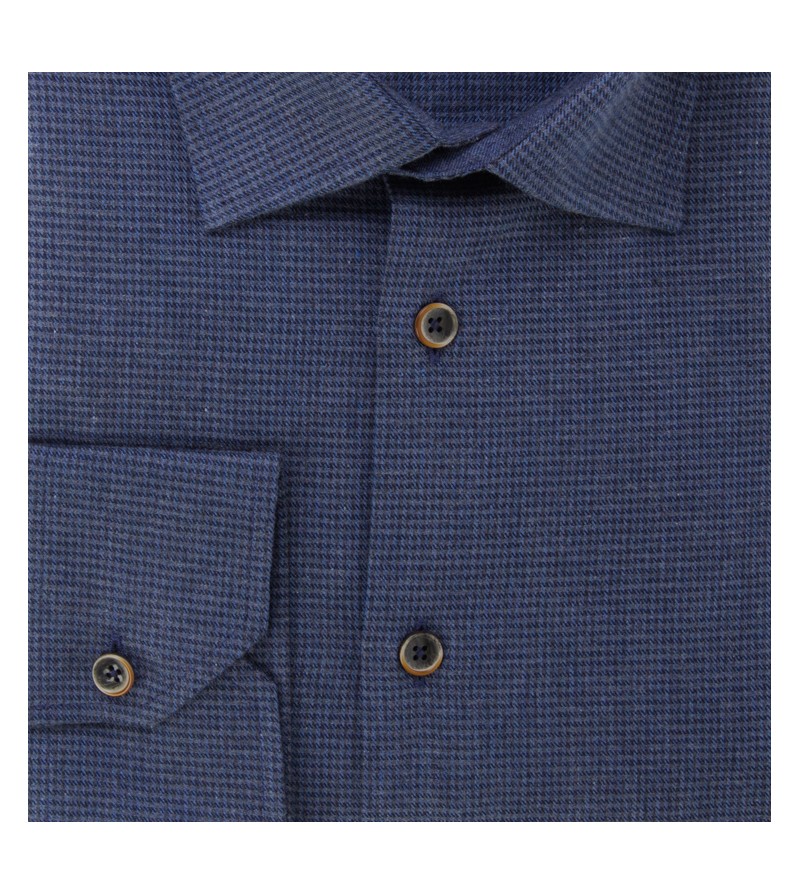 Lengtemaat Hemd extra lange mouw 76 cm tailored fit tot XXLT modern fit vanaf 3XLT zonder borstzakje met grijs accenten strijkvrij easy iron kent kraag subtiel motief sportief comfortabel 100%katoen 40°was kleur: blauw driehoekje