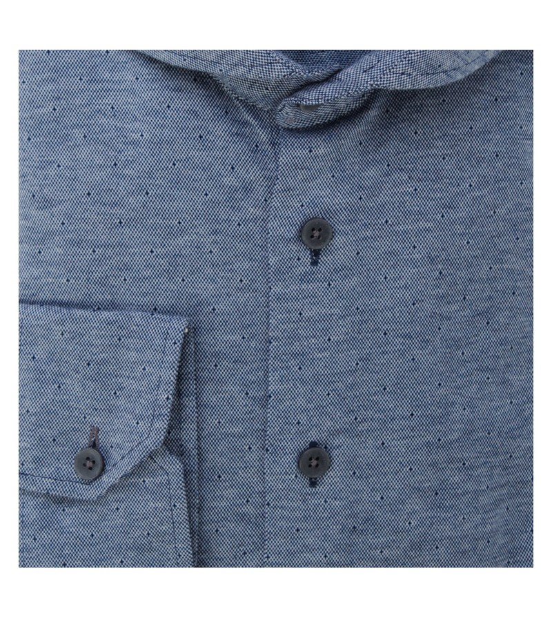 Lengtemaat Hemd extra lange mouw 76 cm tailored fit tot XXLT modern fit vanaf 3XLT zonder borstzakje met grijs accenten strijkvrij easy iron kent kraag subtiel motief sportief comfortabel 100%katoen 40°was kleur: blauw driehoekje