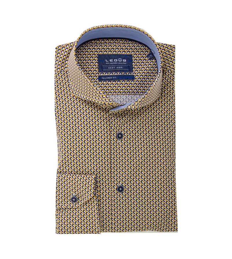 Tall Man Hemd lange mouw tailored fit strijkvrij kent kraag subtiel motief sportief comfortabel 100%katoen 40°was kleur:  geel