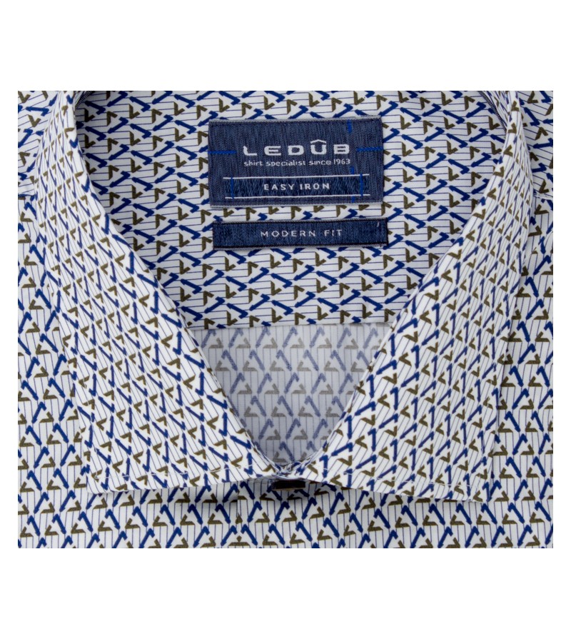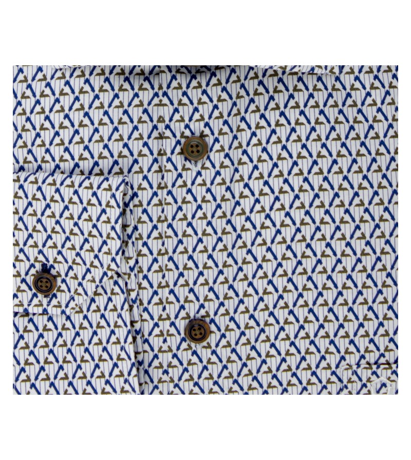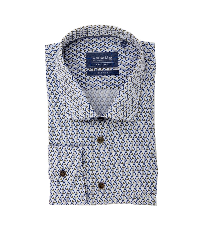 Tall Man Hemd tailored fit lange mouw 76 cm bruine knopen blauwe details stretch kent kraag easy iron netjes afgewerkt comfortabel leuk motief 97%katoen, 3%elasthaan 40°was kleur: wit