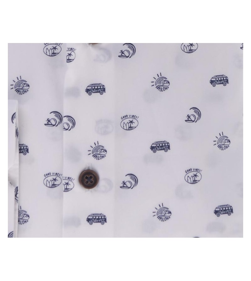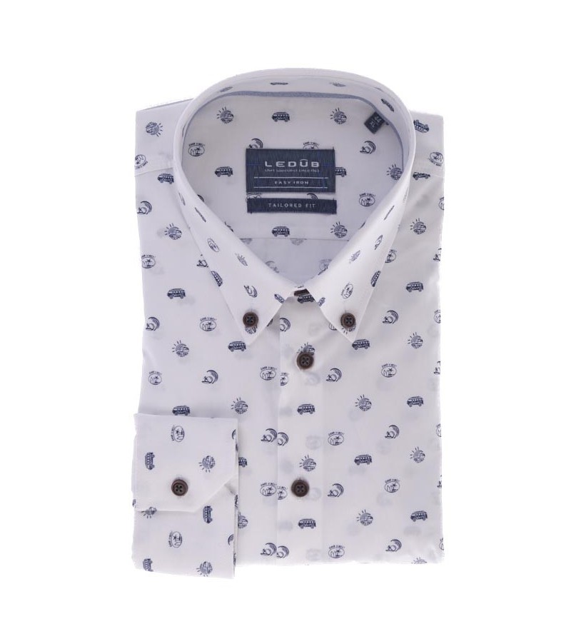 Tall Man Hemd tailored fit lange mouw 76 cm bruine knopen blauwe details stretch kent kraag easy iron netjes afgewerkt comfortabel leuk motief 97%katoen, 3%elasthaan 40°was kleur: wit