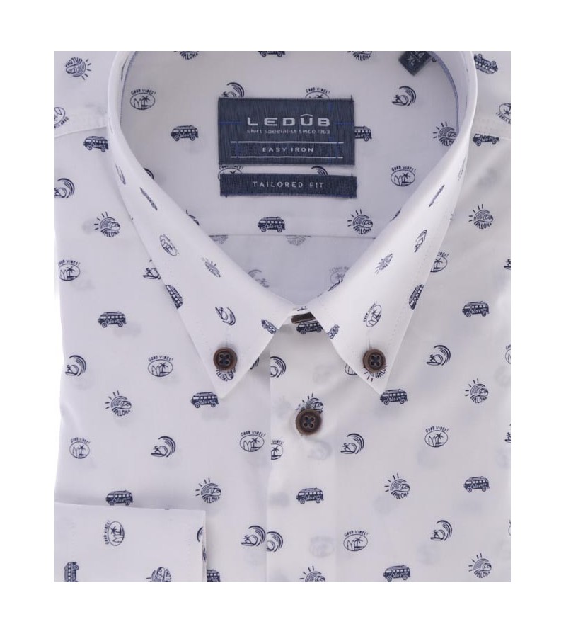 Tall Man Hemd tailored fit lange mouwen kent kraag easy iron leuk motief kwaliteit 100%katoen 40°was kleur : wit