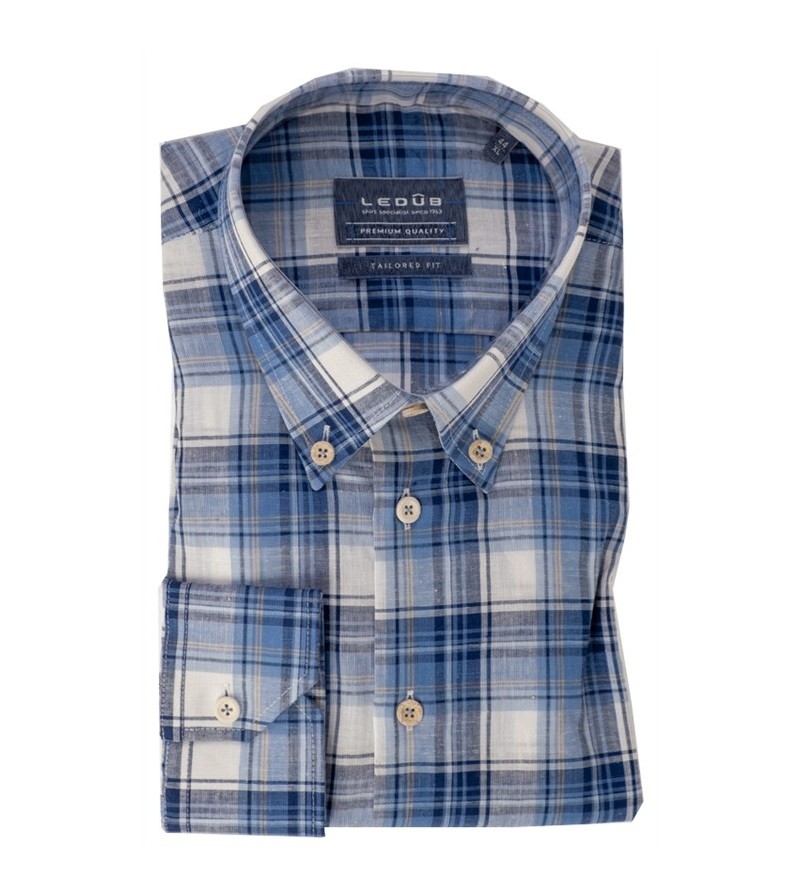 Tall Man Hemd tailored fit lange mouw kent kraag zomer katoen netjes afgewerkt kwaliteit zomerse look comfortabel 100%katoen 40°was kleur: blauw