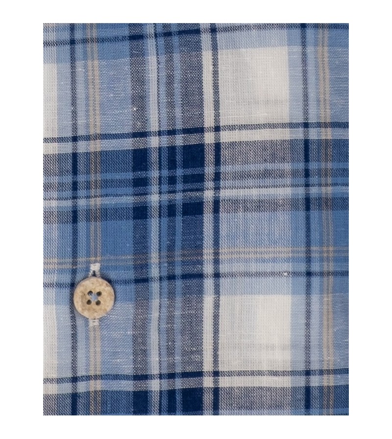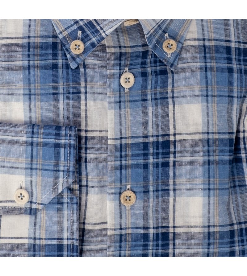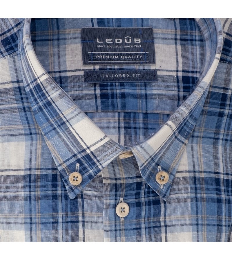 Tailored Fit Hemd lange mouw 76 cm tailored fit geen borstzakje kent kraag non iron netjes afgewerkt 100%katoen 40°was beige knopen kleur: beige / licht blauw
