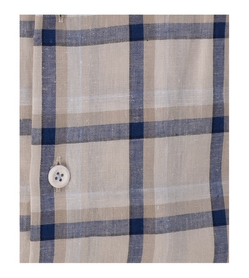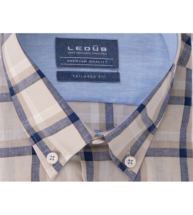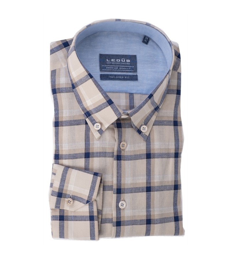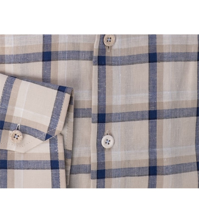 Tailored Fit Hemd lange mouw 76 cm tailored fit geen borstzakje kent kraag non iron netjes afgewerkt 100%katoen 40°was beige knopen kleur: beige / licht blauw