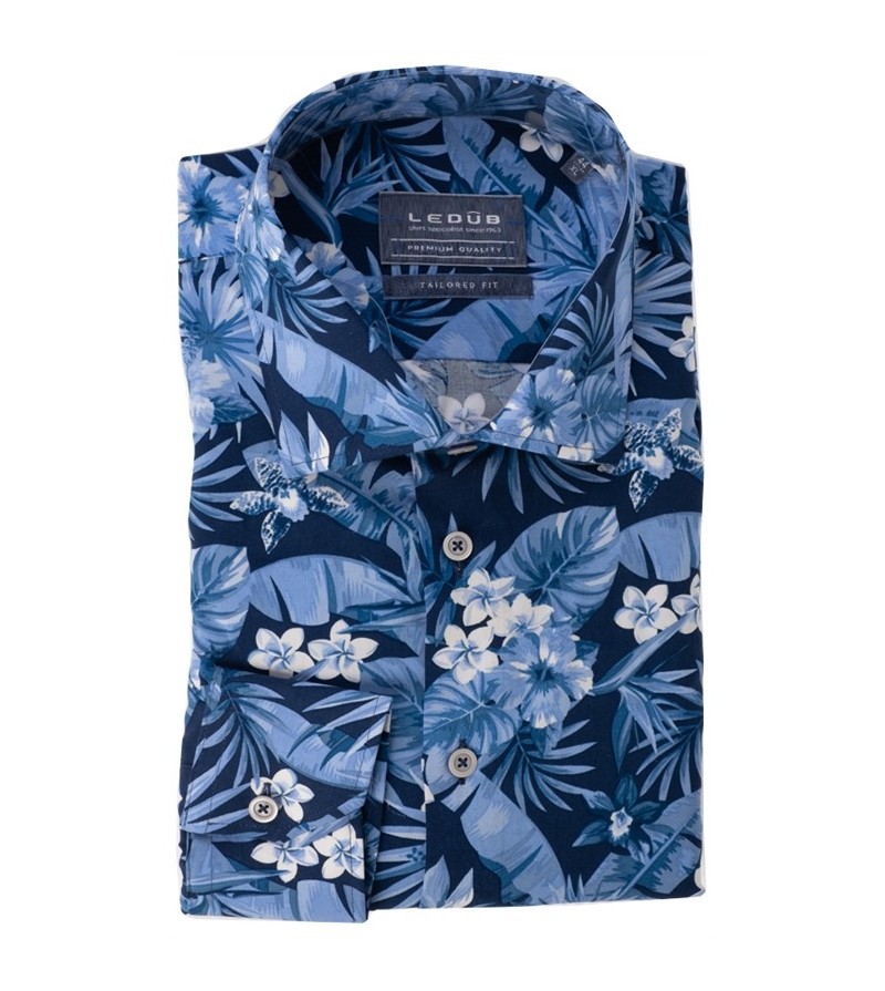 Tall Man Hemd lange mouw tailored fit strijkvrij italiaanse kraag leuk motief sportief comfortabel 100%katoen 40°was kleur: blauw