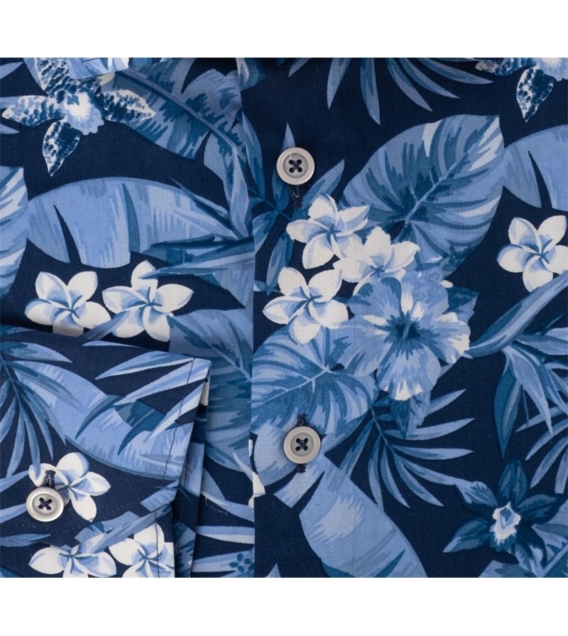 Tall Man Hemd lange mouw tailored fit button down kraag leuk motief comfortabel netjes afgewerkt 100%katoen 40°was kleur : navy