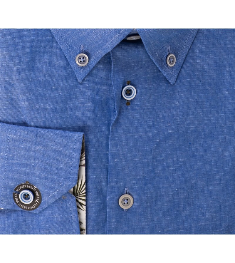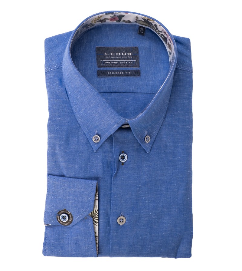 Tall Man Hemd tailored fit lange mouw kent kraag zomer katoen netjes afgewerkt kwaliteit zomerse look comfortabel 100%katoen 40°was kleur: blauw